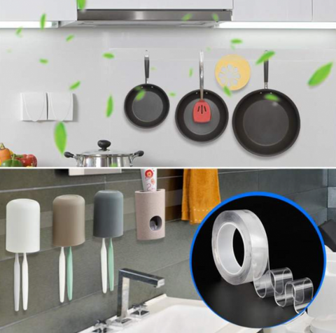شريط لاصق نانو السحري الشفاف ✨ | تثبيت قوي، قابل للغسل وإعادة الاستعمال بدون حفر